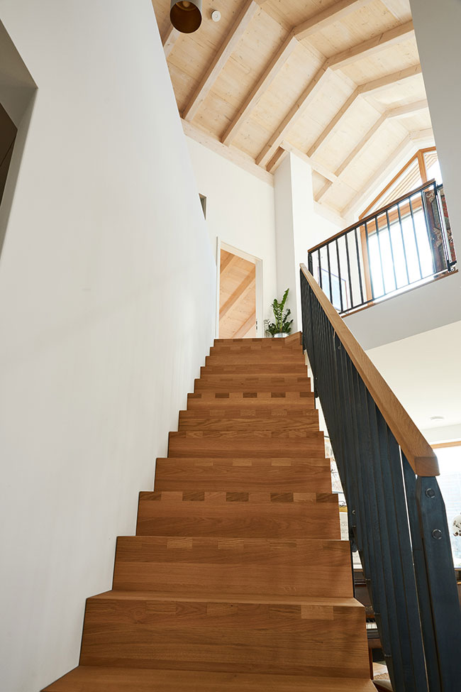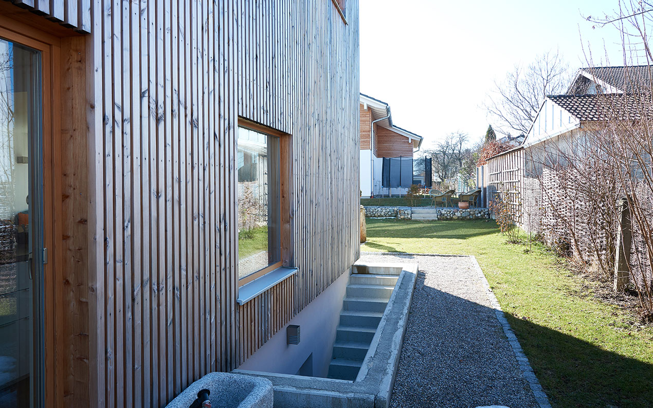 Dieses Gebäude in Massivholzbauweise wurde 2014 von uns nach dem Entwurf des Architekturbüros UNISONO teilschlüsselfertig erstellt. Es besticht durch sein ausgefallenes Raumkonzept mit Galerie und zweiter Einliegerwohnung im Erdgeschoss.