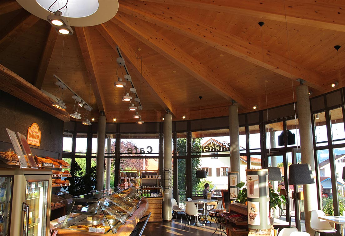 Der Werkstoff Holz zeigt insbesondere im Gewerbebau die ganze Bandbreite seiner Möglichkeiten. Seine gestalterische Qualität prägt öffentliche Gebäude, wobei die große Vielfalt an Holzwerkstoffen Architekten eine große Gestaltungsfreiheit ermöglicht. Mit Holz gelingt problemlos die Überbrückung großer Spannweiten.
