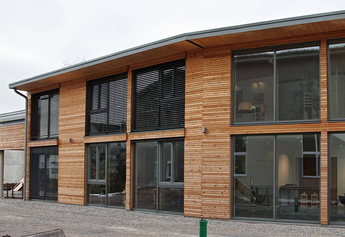 Wir planen Gewerbebauten und fertigen diese sowie öffentliche Gebäude in Holzbauweise, wobei wir unseren Bauherren immer auch beratend zur Seite stehen. Passgenau zu Ihren Anforderungen planen wir das Gebäude mit äußerster Sorgfalt. Im Anschluss erfolgt eine überraschend schnelle Bauzeit. Nach der Vorfertigung aller Bauteile in unserer Halle erfolgt die präzise Montage auf der Baustelle binnen weniger Tage.